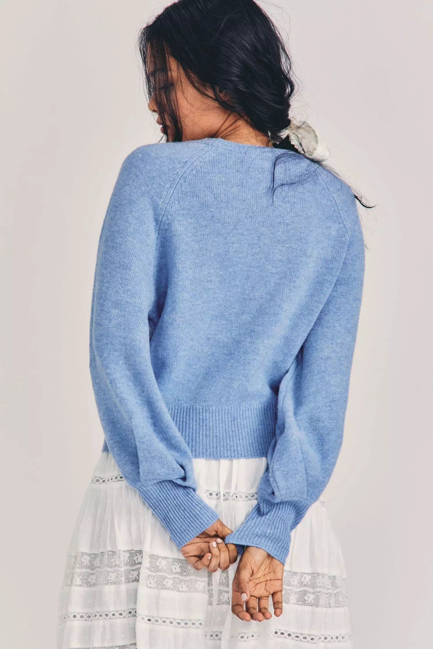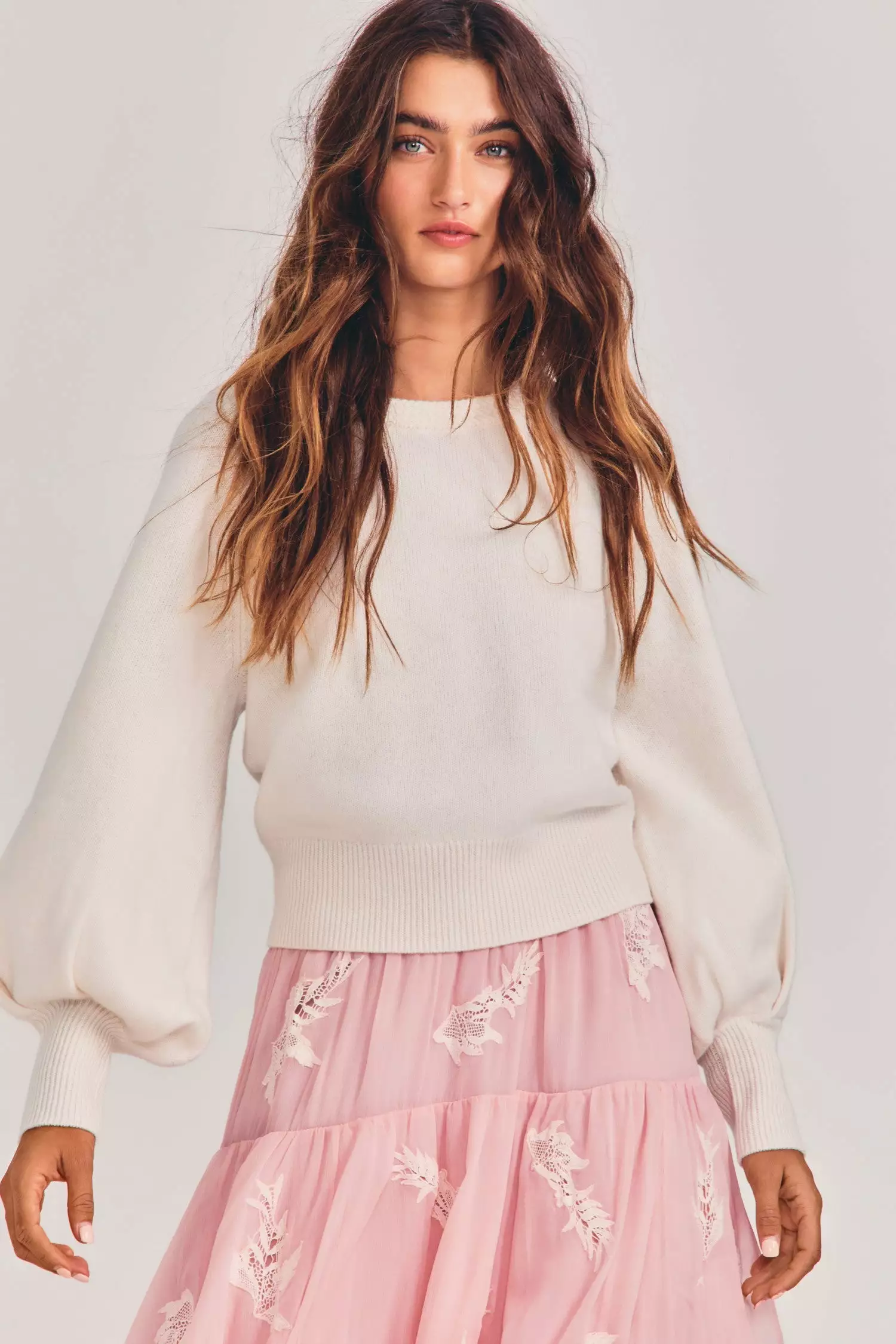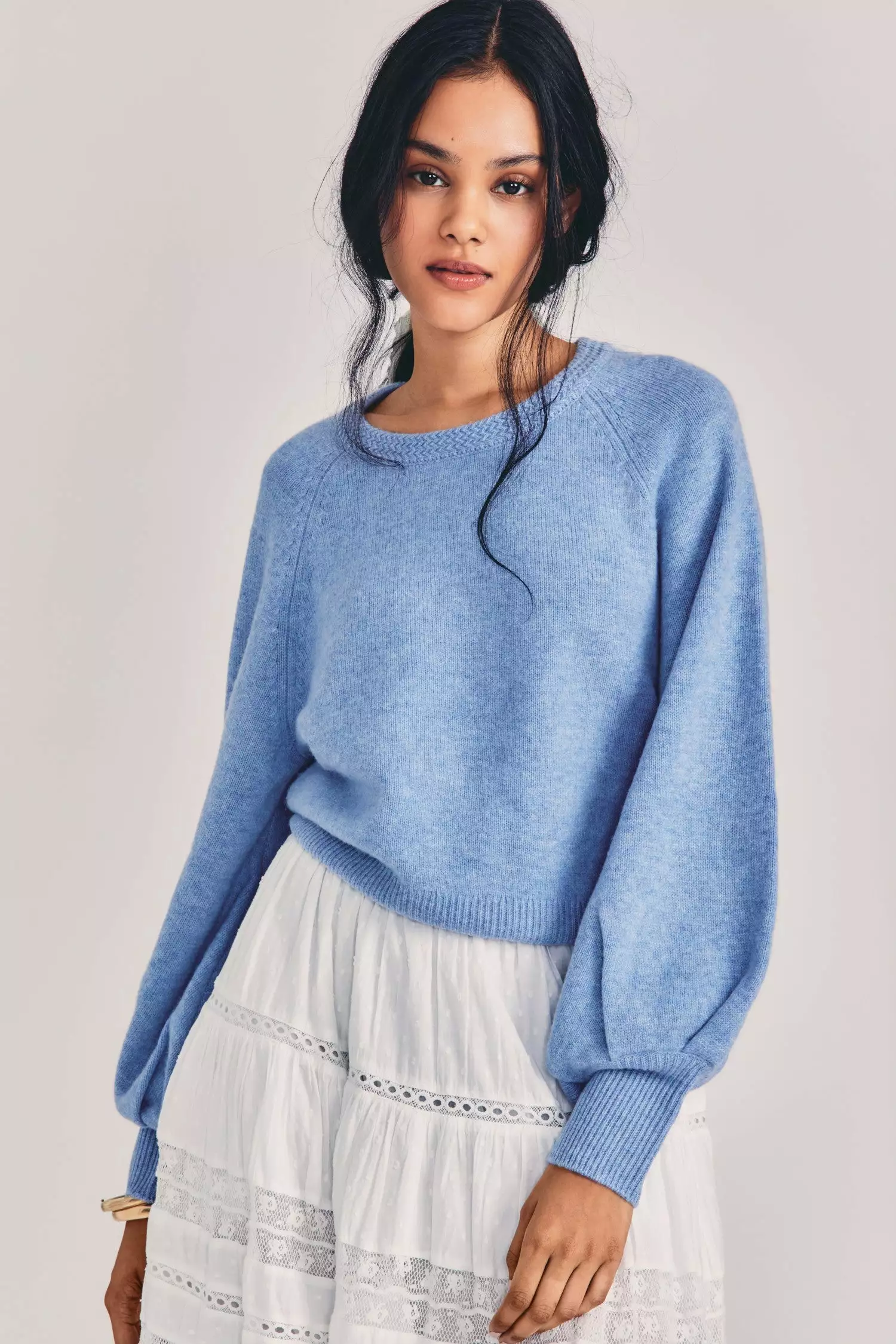 Our beloved Ashland Pullover returns in a cashmere-wool blend. This everyday must is perfect with jeans or dressed up and has a relaxed sweatshirt-style cut with a textured crewneck, blouson sleeves and matching tall ribbed cuffs at sleeve opening and at sweaters bottom. Pair it with our Seniya Skirt.