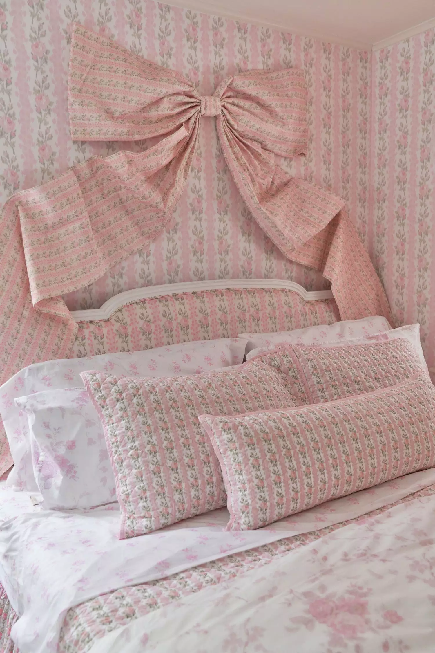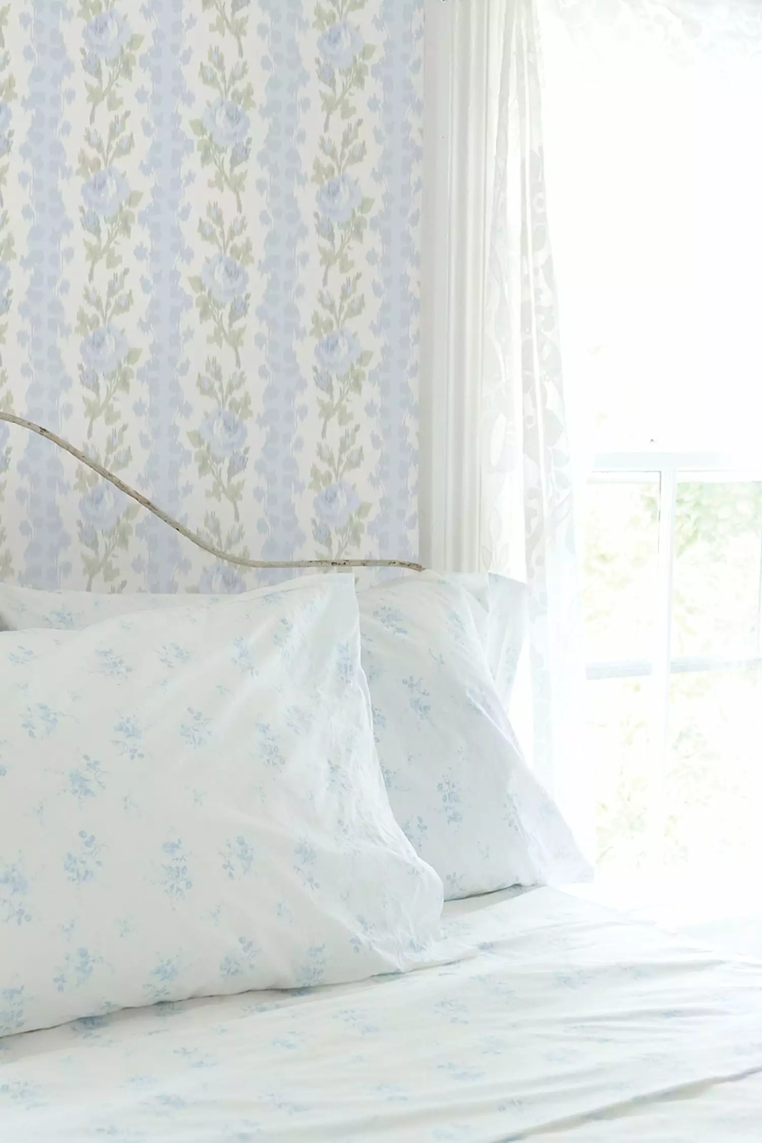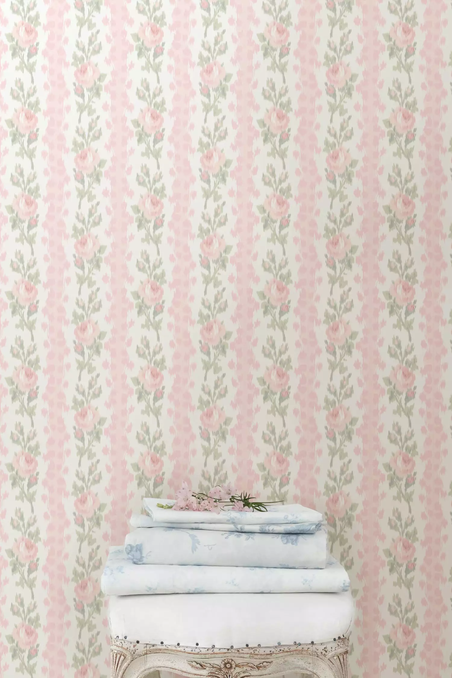 Wrap your walls in sweetness and elegance with this floral wallpaper. Vined columns of pink roses bloom extravagantly against a cream-colored backdrop. Each roll measures 20.5β x 33′. Mix and match with our Blooming Heirloom Quilt & Sham Set and our Pastiche De Bouquet Sheet Set.Β