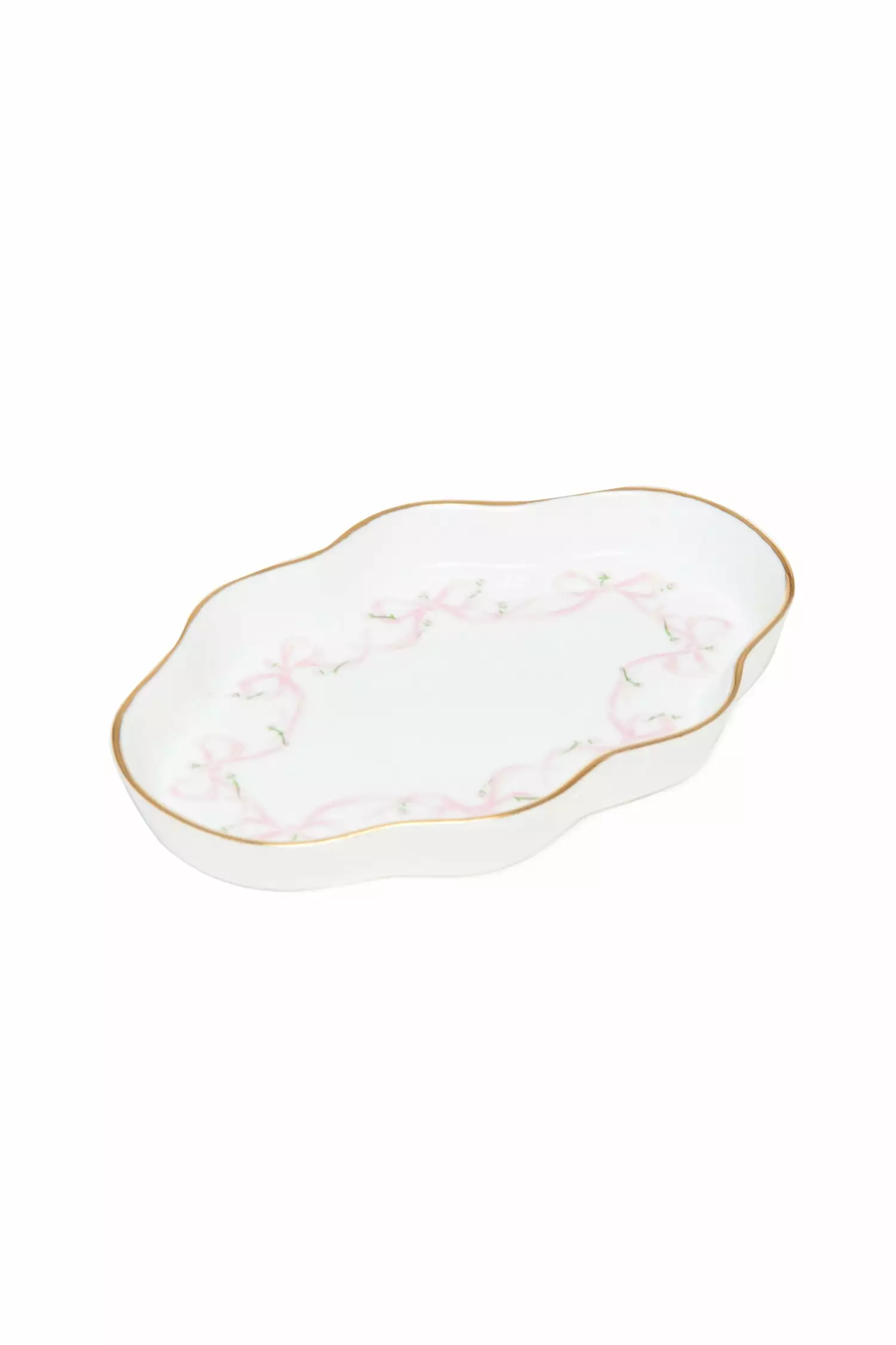 This handmade porcelain scalloped dish makes a sweet addition to your home with our signature pink LoveShackFancy bows. Made in the English Countryside by The Present Company this dish is a must-have. Shown here in Pink Bow.
