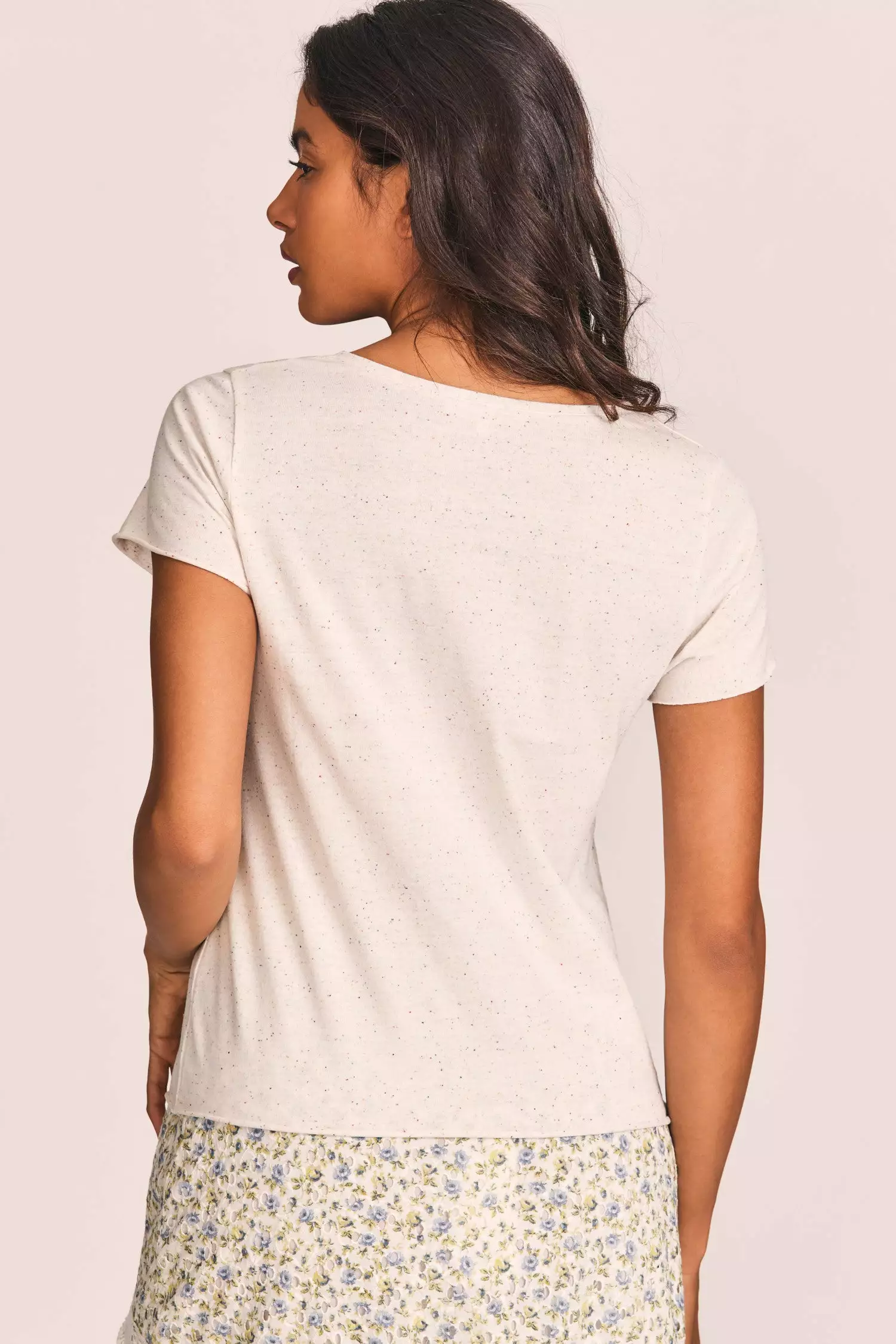 Our new Crawford Tee is inspired by the planet with aΒ percentage of proceeds going to theΒ World Wildlife Fund. This raw-edged, relaxed fit t-shirt is eco-printed and made from speckled sustainable materials.Β The circle neck has a slit at center front above a custom hand-painted graphic of a rainbow, animals and our planet. Shown here in Natural Botanical Multicolor.