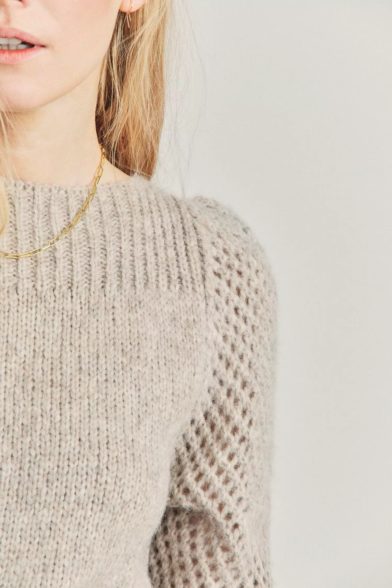 Our Rosie pullover is an instant favorite. Made from baby alpaca, this style is extremely light and fluffy whilst maintaining a chunky look. The pullover features a straight rib neckline and straight body with rib finishing. Added drama in the sleeves contrasts against the body, with an open-knit weave and puff in the shoulder that slims out towards the bottom. Pair it with our Ruffle Mini Skirt.