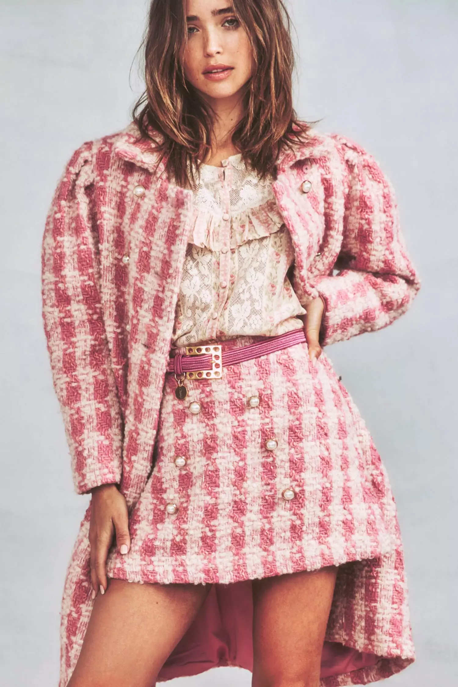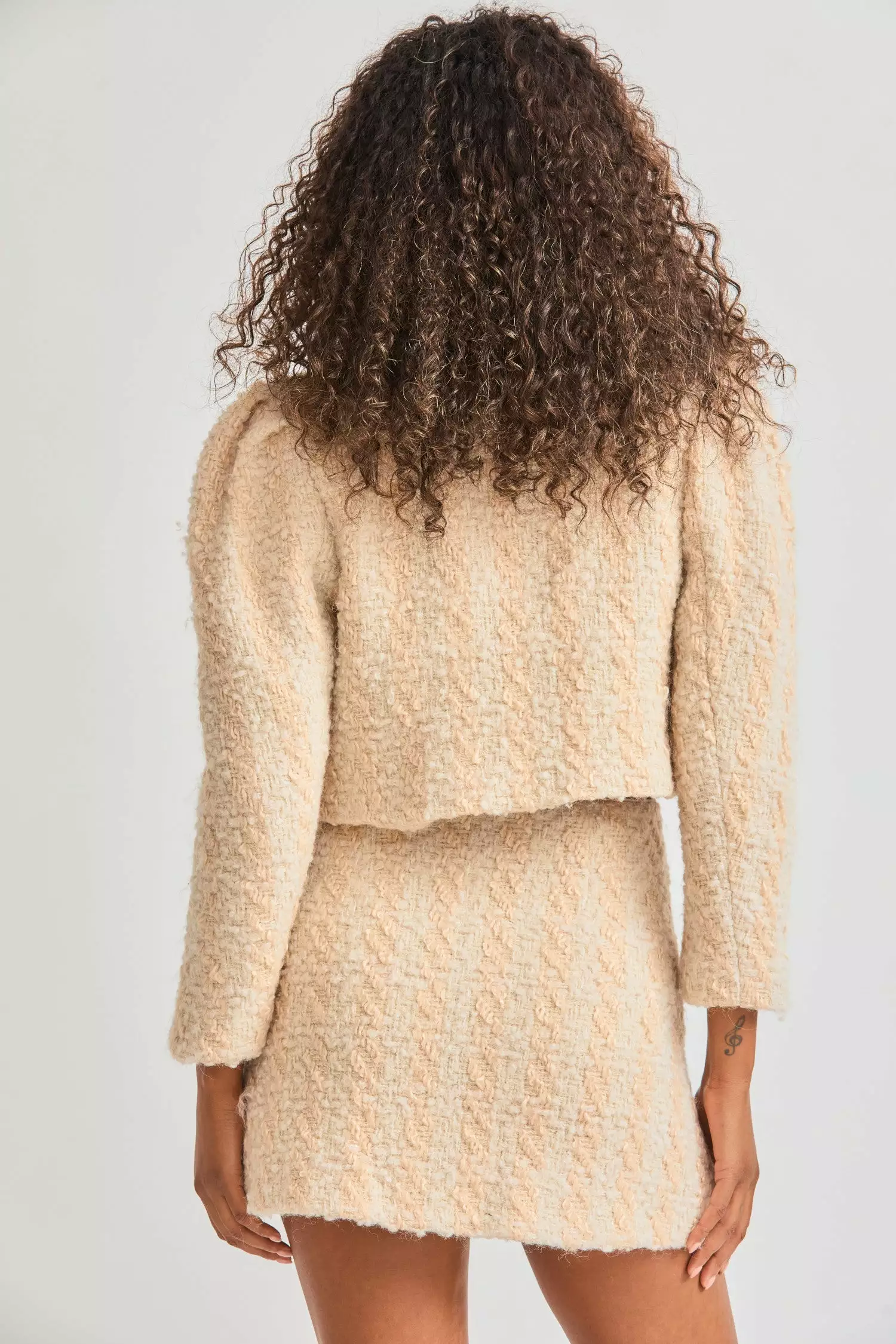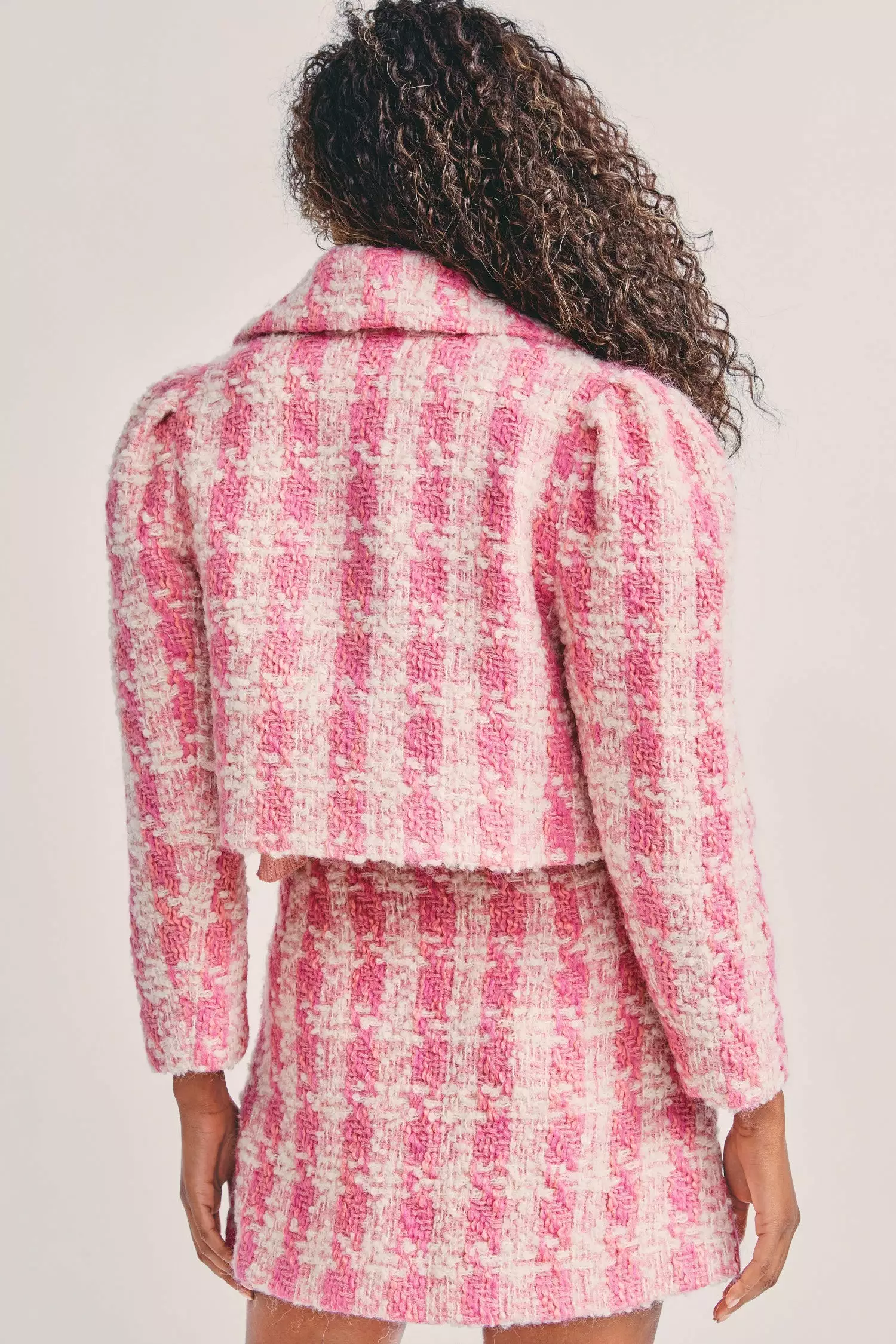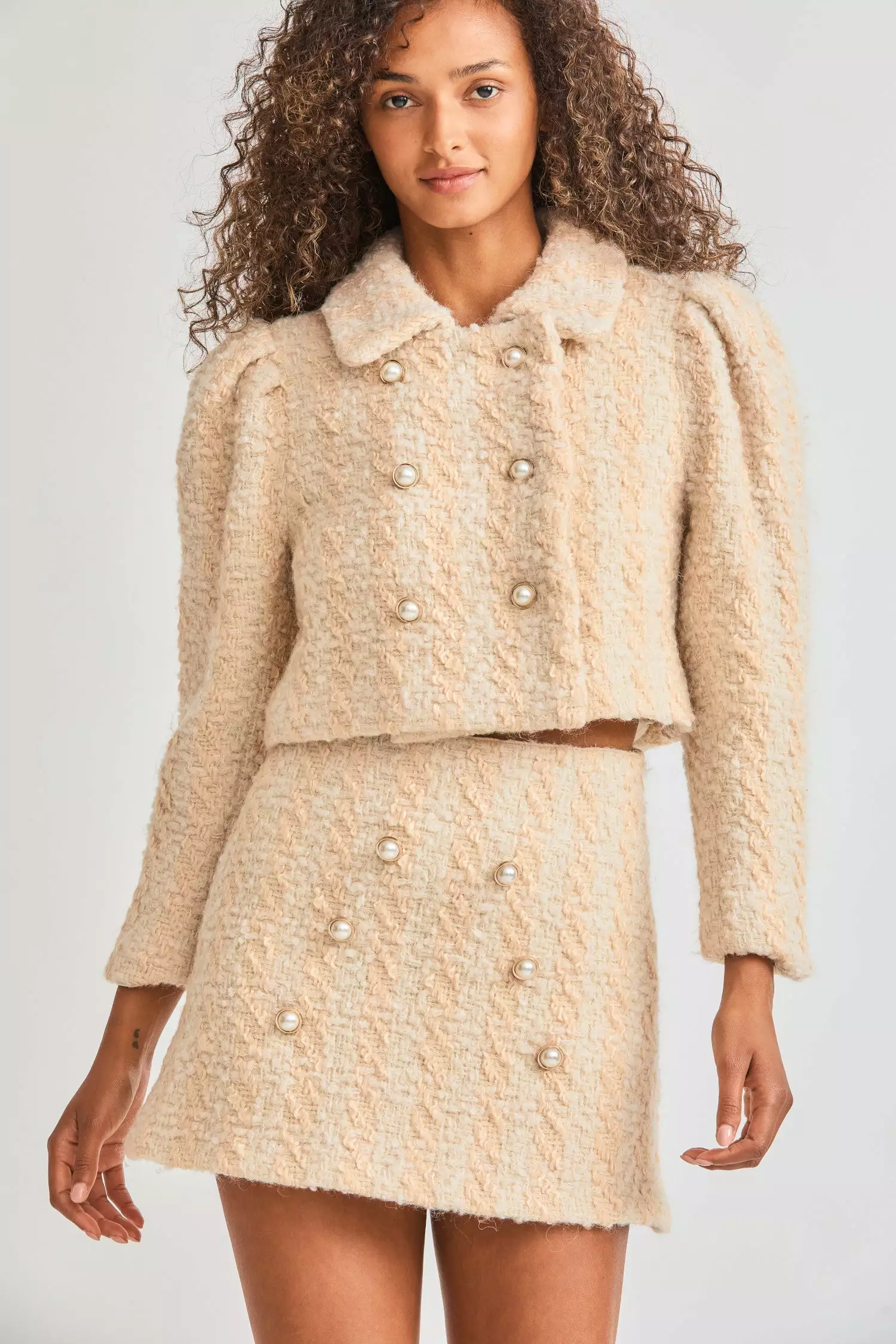 Bottoms up to our vintage-inspired Gibson Skirt, arriving in a dense wool blend with a houndstooth pattern. This throwback style is refreshed as a slim-fit mini with side-seam pockets, an exposed metal zipper and decorative buttons. Perfect as a suit when paired with our Mews Cropped Jacket or style it with our Laredo Top.