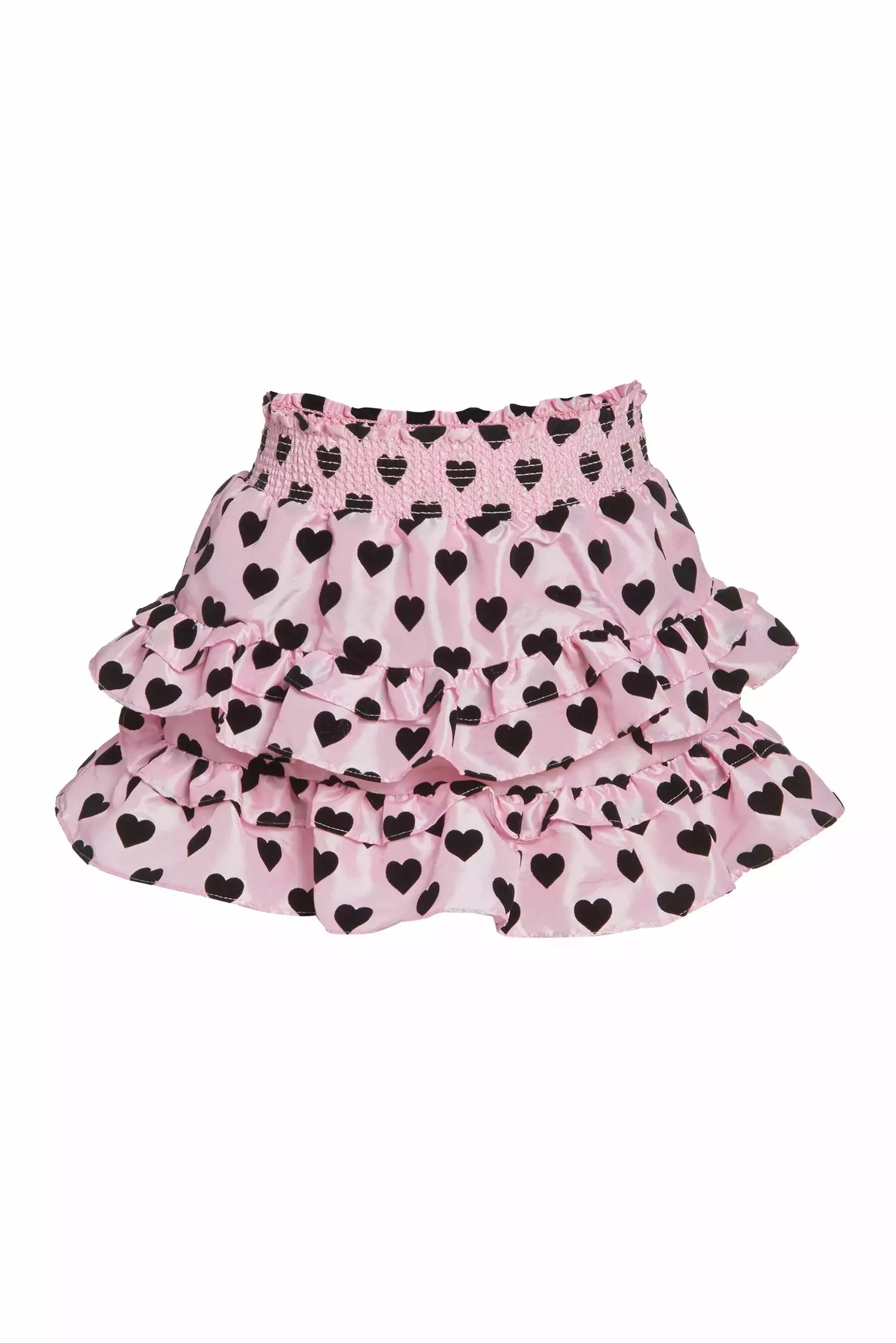 Our Billie Skirt is reimagined in taffeta with a signature holiday plaid print. Below a wide smocked waistband, the skirt falls to two shirred tiers with ruffle details. Shown here in Rosebud.