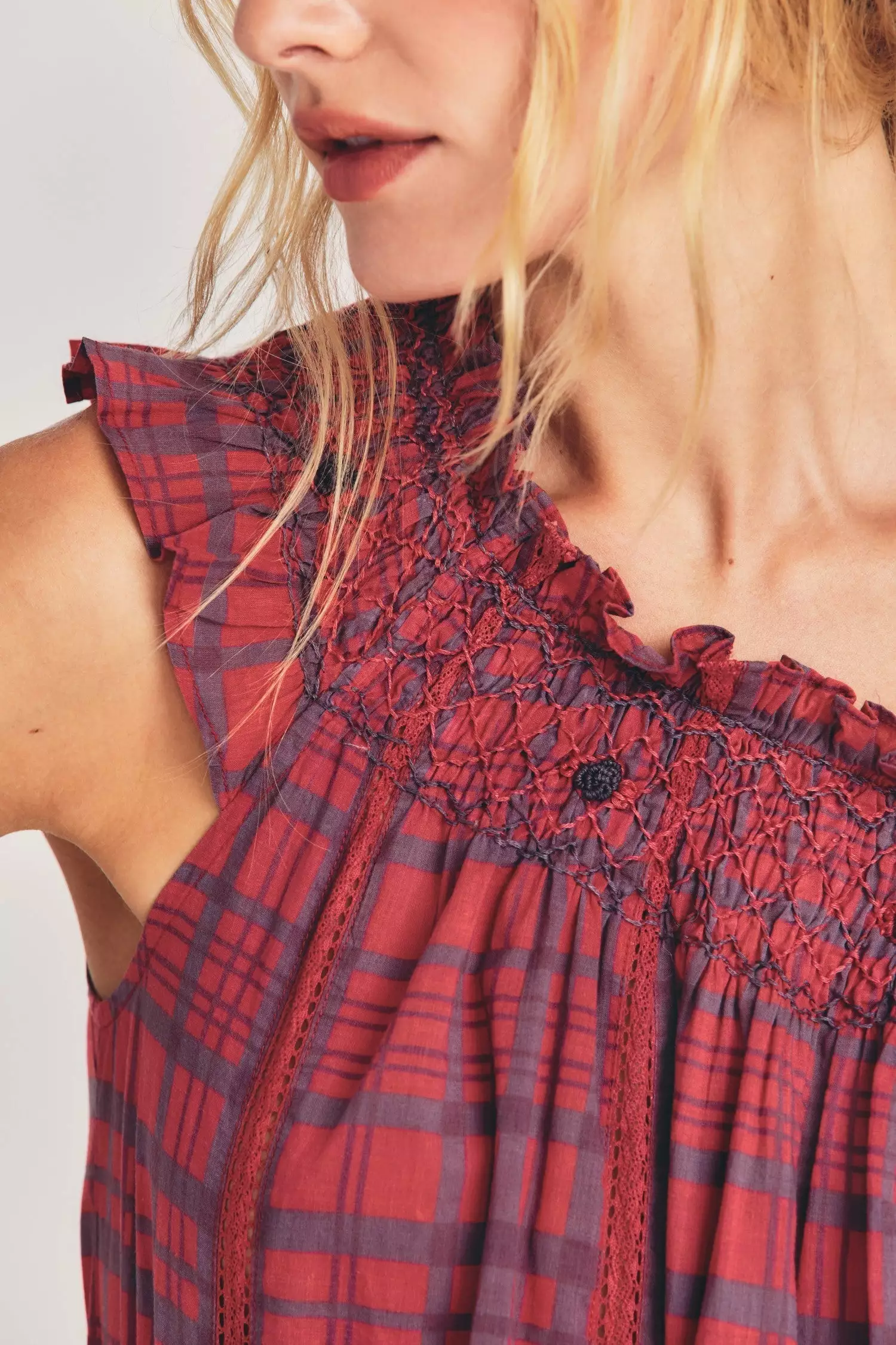 Our Finchley Dress is the stuff of sweet dreams in airy 100% cotton with custom lace details, top-applied mini rosettes and a faded floral print. This relaxed nighty-meets-dress has a scoop neck, encircled by ruffles and smocking and framed by short flutter sleeves. Accessorize it with our Tellaro Victorian Scrunchies.