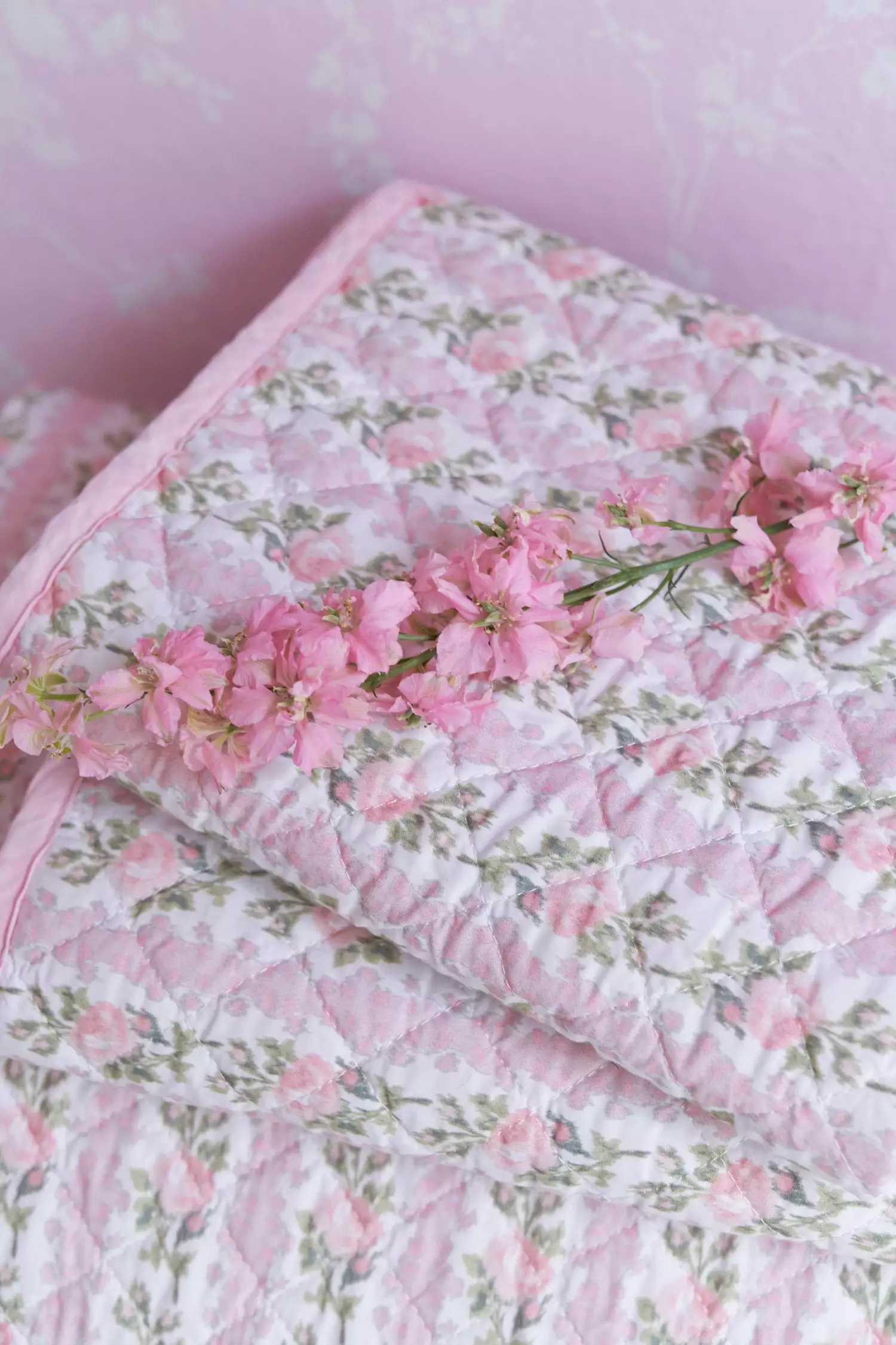 Crafted from 100% cotton and garment washed for added softness, our Blooming Heirloom Quilt & Sham Set features a diamond-stitched detail and lived-in feel. Featuring the LoveShackFancy Blooming Heirloom print, this bedding set is the perfect addition to any bedroom. Mix and match with our Chandelier Gates Wallpaper. Shown here in Antique Pink.
