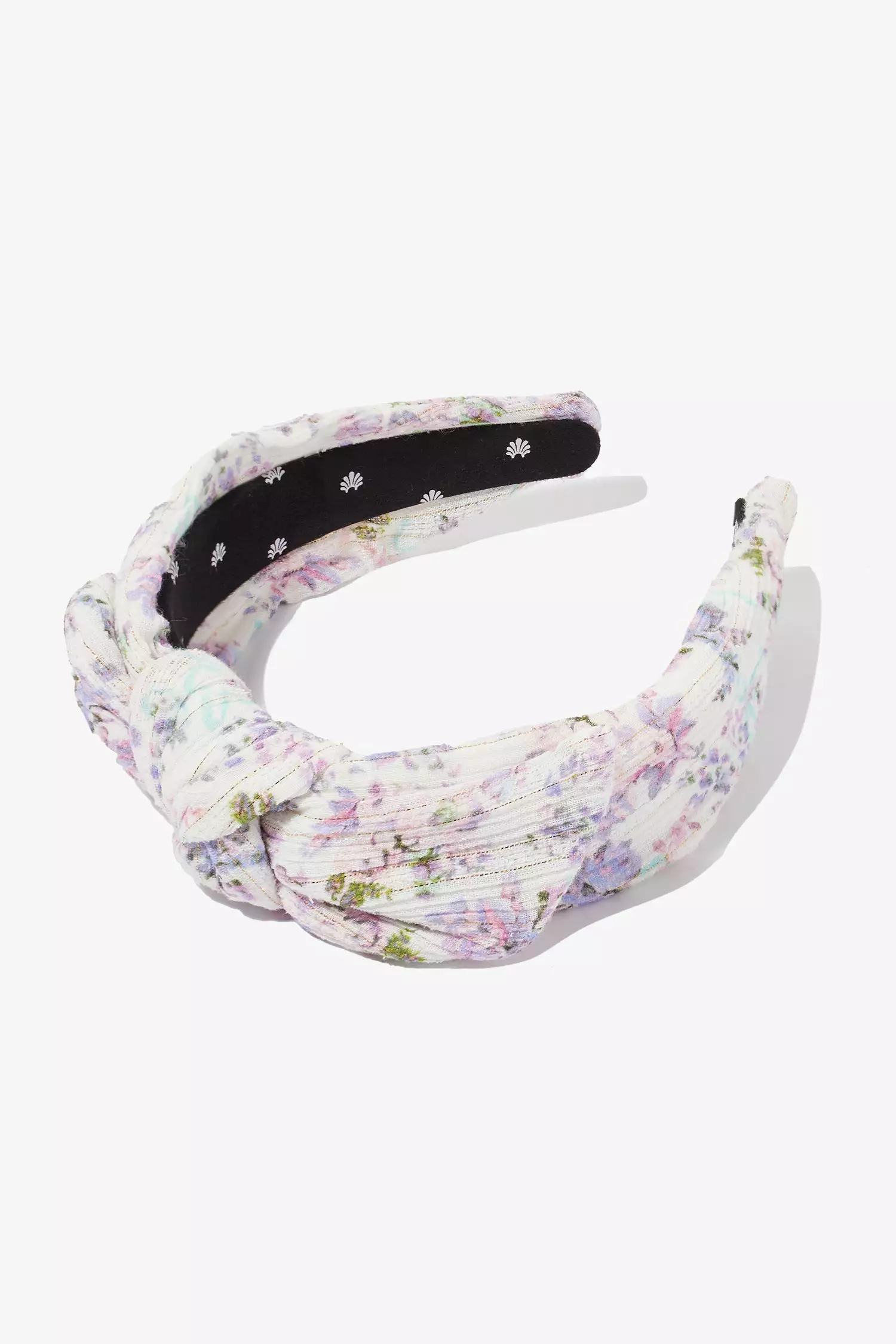 This season, our LoveShackFancy x Lele Sadoughi Knotted Headband returns in updated textiles. On this wide headband, material is hand-knotted over a 1″ tall comfort fit base with a 1 1/2″ knot and 2 1/4″ width. Arrives in a LoveShackFancy print dust bag. The Knotted Headband is the perfect accessory toΓ₯Γour Branton Cropped Cardigan. Shown here in Positano Blue.