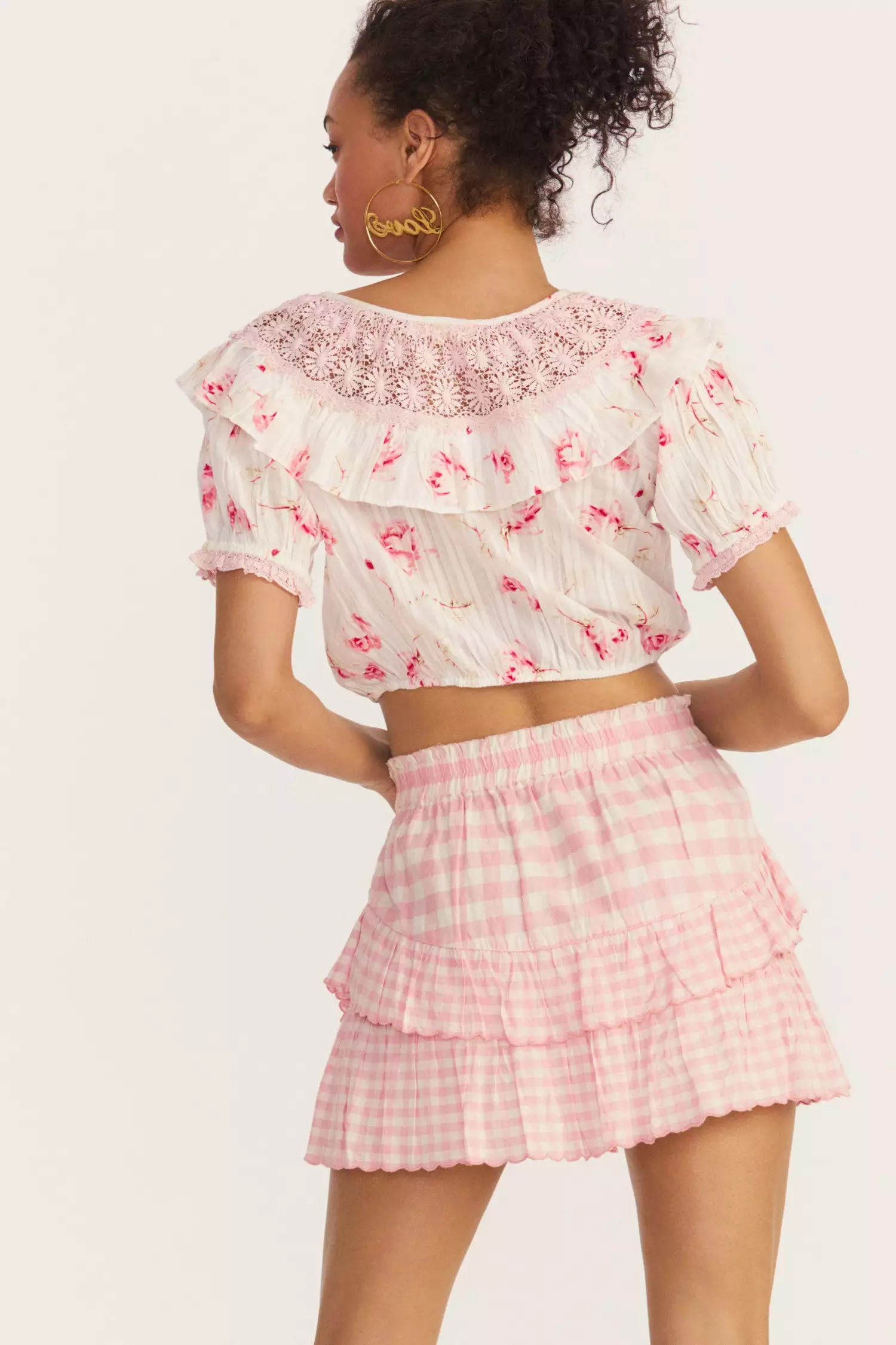 Having a pink moment in our Shae Skirt in our Lido Check Cotton. This three-scaled skirt features medium and micro printed checks with scalping embroidery at each tier and comes adorned with custom lace and tucking throughout.Β Pair it with our Elania Crop Top. Shown here in Groovy Pink.