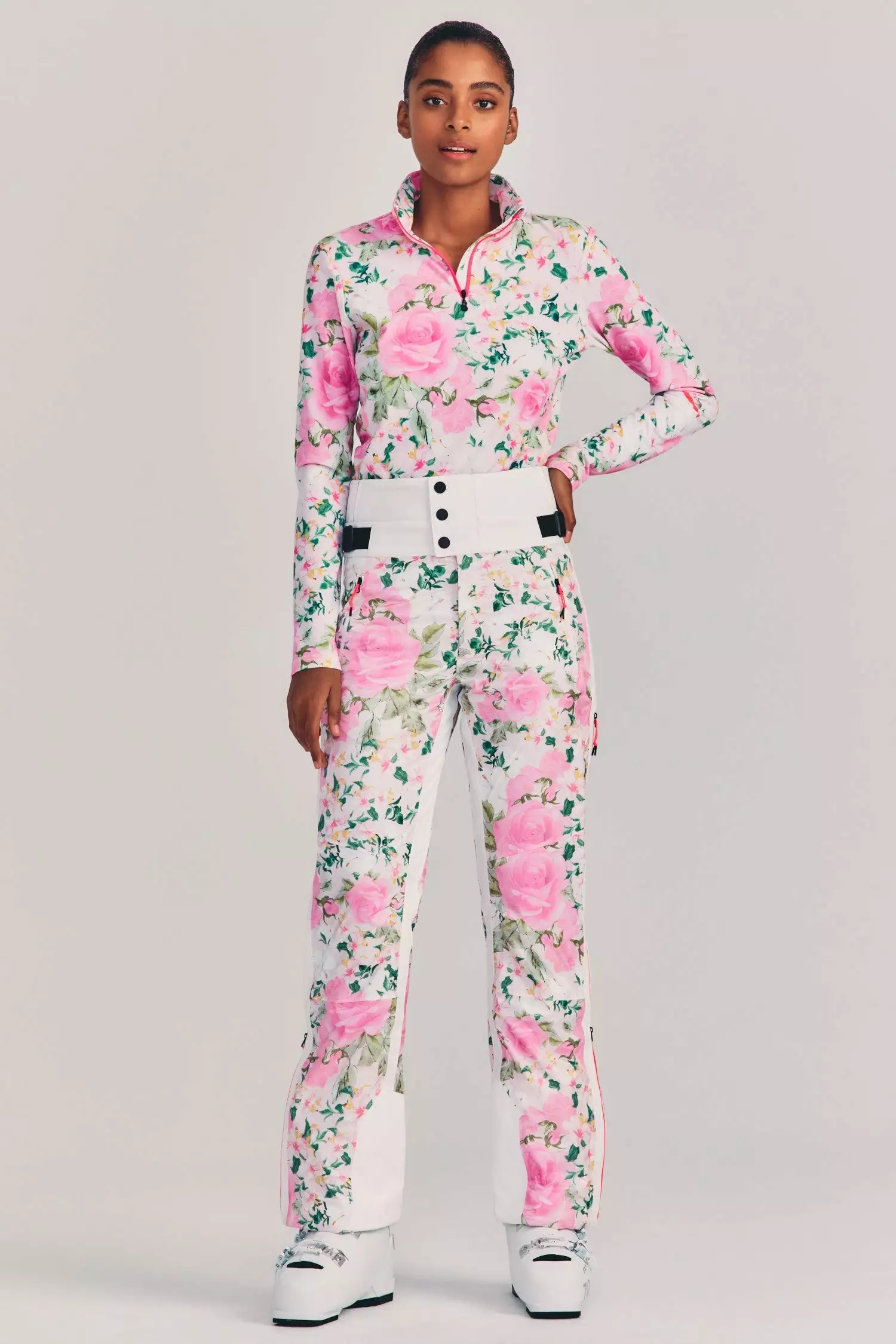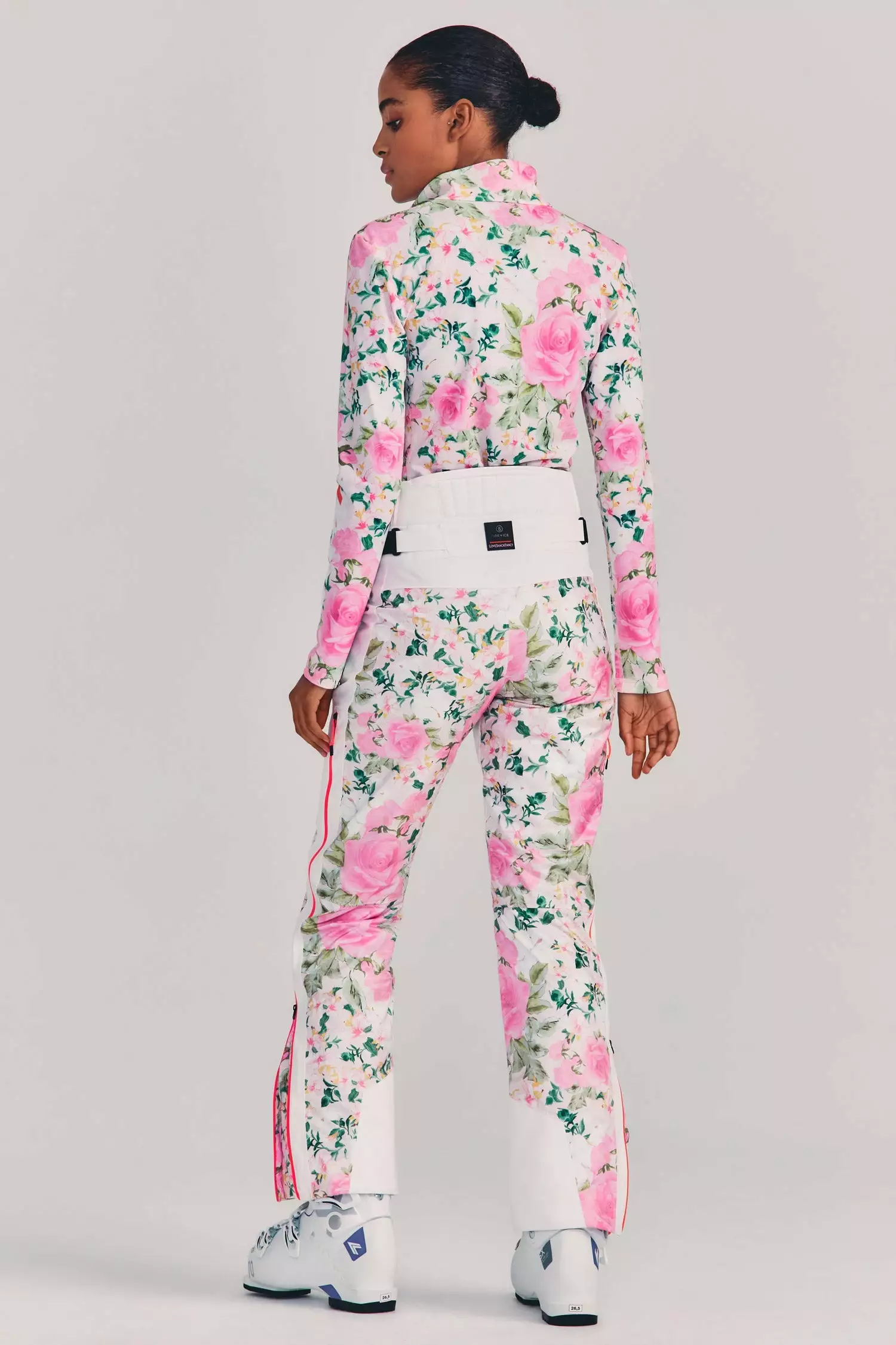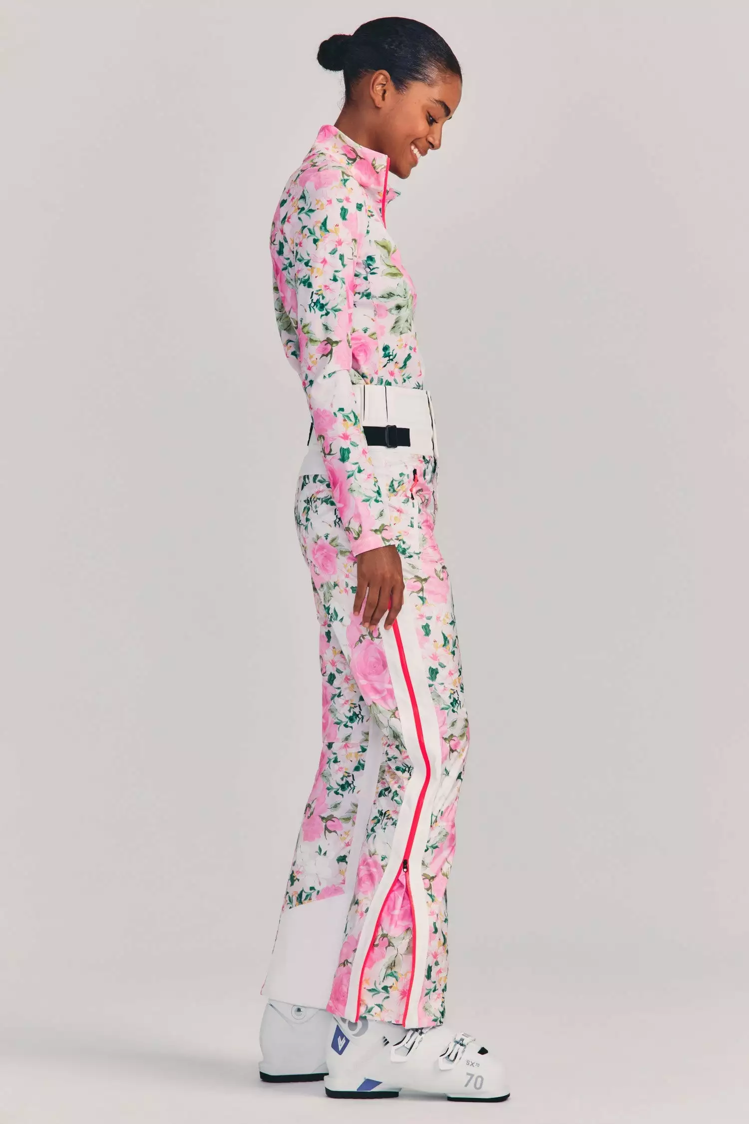 Our LoveShackFancy x BOGNER FIRE + ICE high-waisted Portia Ski Pants feature an exclusive LSF print with a mix of ripstop material on front and back with 4-way stretch at the waist and sides. The Portia has breathable and movement-friendly qualities for perfect comfort on or off the slopes. Complete the set with our Sella Ski Jacket and Margot Quarter Zip.