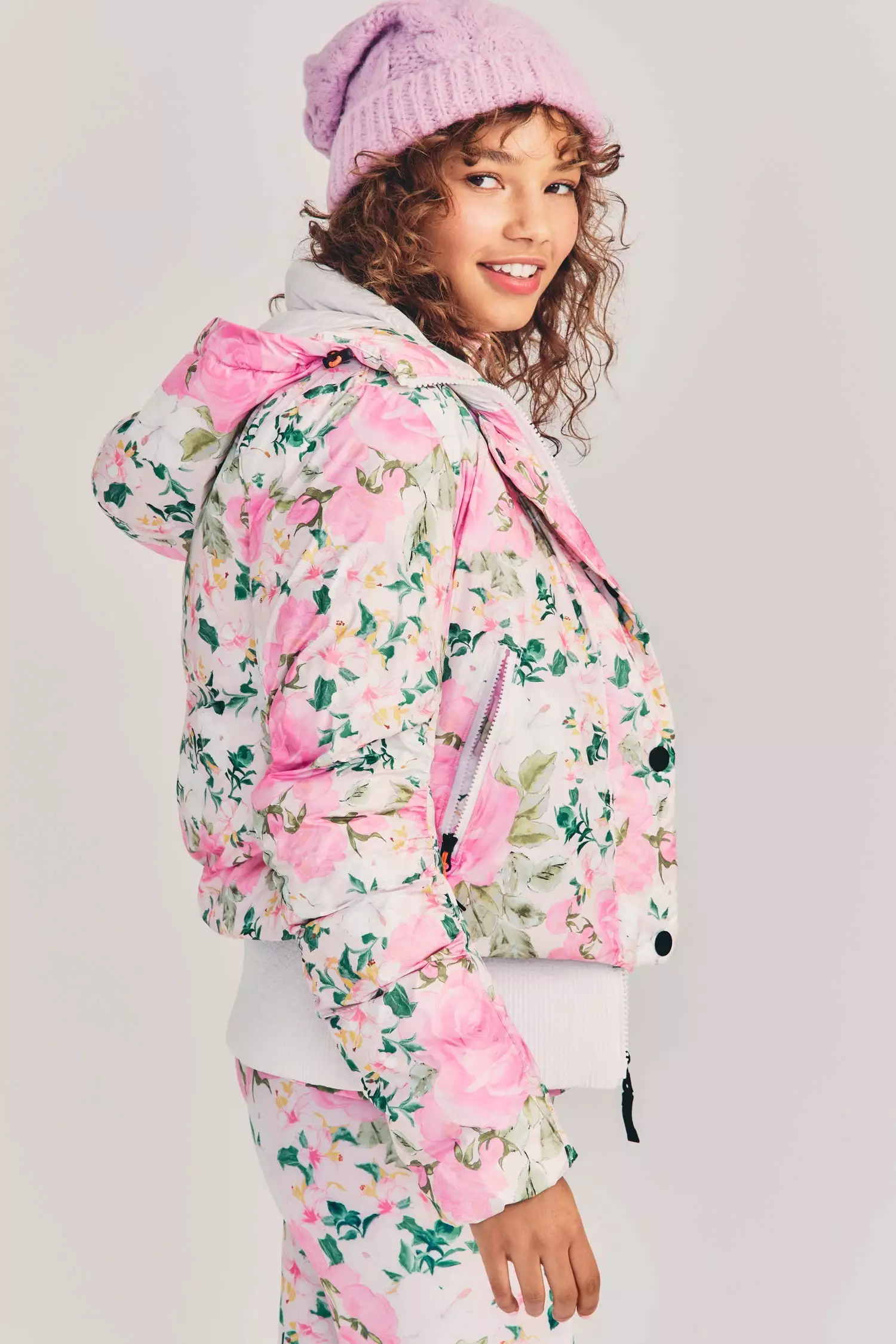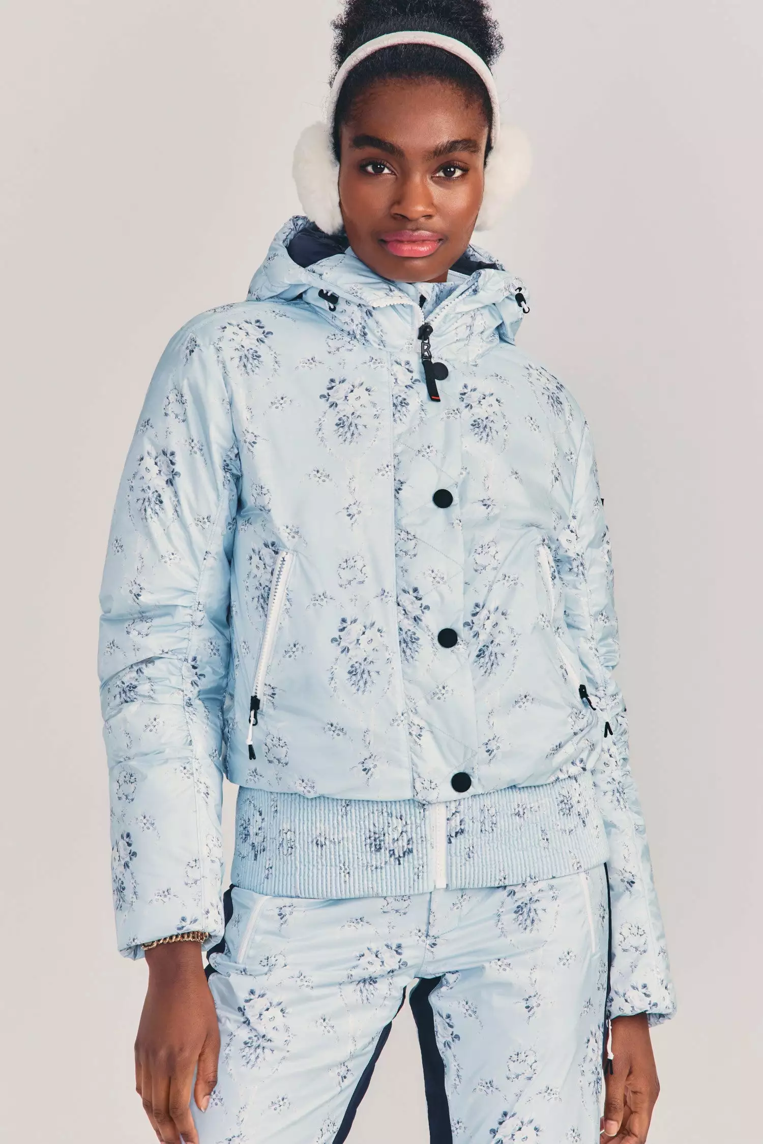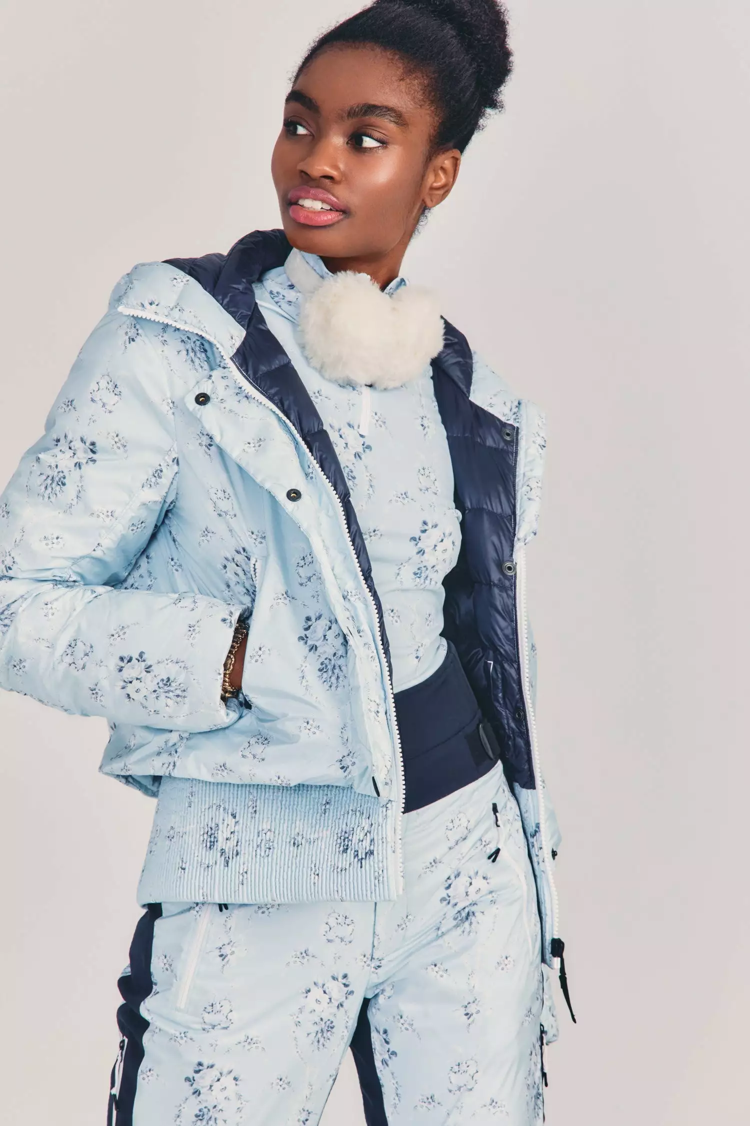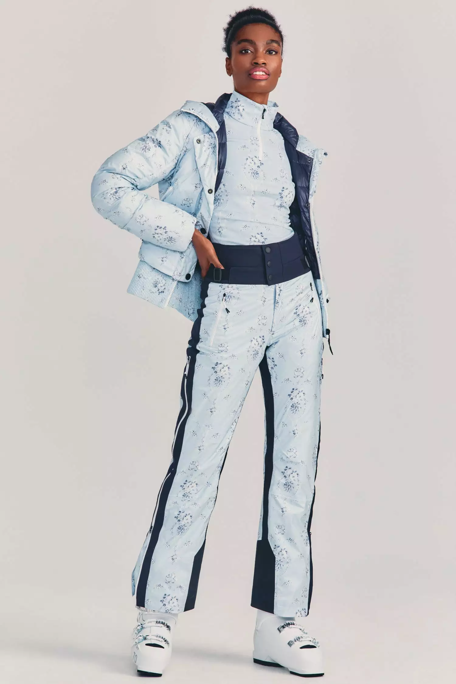 The LoveShackFancy x BOGNER FIRE + ICE stylish bomber-style down ski jacket in our LSF exclusive print features a dropped waist powder skirt, articulated sleeve, and interior down baffles great for on and off the slopes. Padded with a filling made entirely from recycled technical fibers, this jacket offers optimum thermal insulation. The Sella Jacket is a modern key piece for a striking look on the slopes. Complete the look with our Margot Quarter Zip and Portia Ski Pants